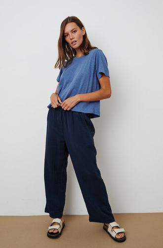 You are definitely going to want to make room in your wardrobe for this super comfy cotton gauze trousers from Velvet by Graham & Spencer. With the ease of a pull on trouser, a drawstring waist, a relaxed leg and the perfect pockets you'll reach for these again and again.