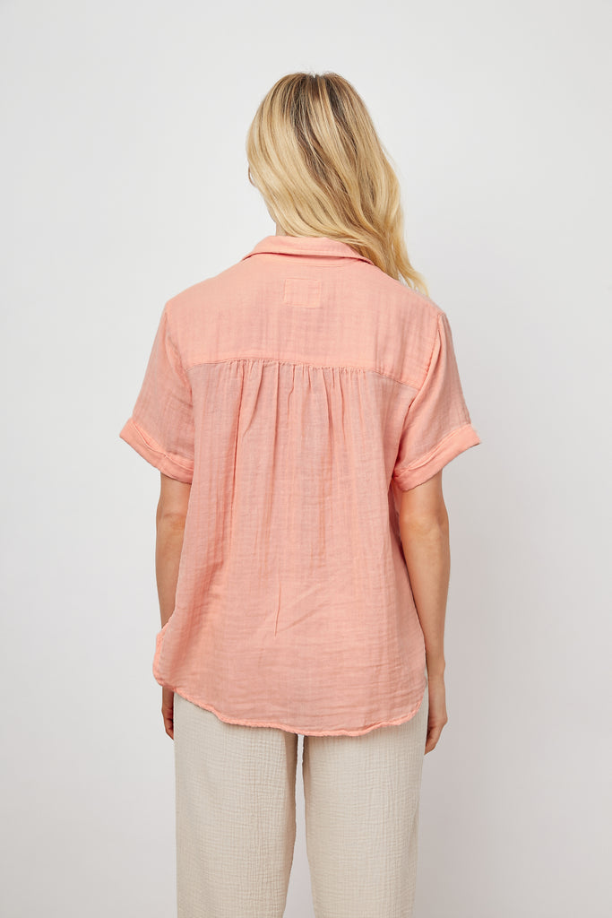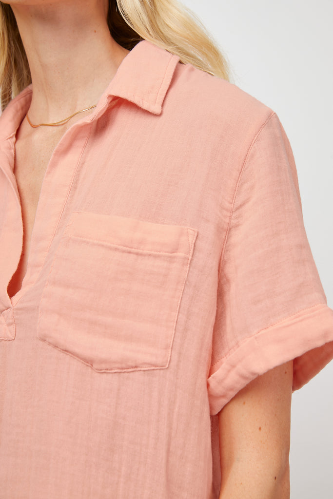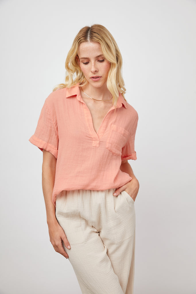 This effortless lightweight, cotton gauze, flamingo v-neck pullover from Rails features a relaxed fit, a half placket neckline, a patch pocket at the chest and rolled sleeves. Look refined and polished in this super soft, breezy style top.