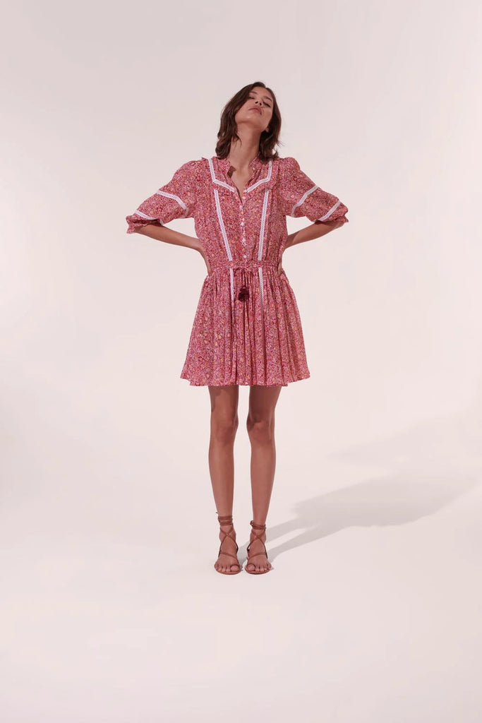 The Amanda mini dress from Poupette St Barth features elbow length sleeves and is inspired by an oriental spirit. The rich structure is marked with crochet bands and an elasticated adjustable waistband. Easy to wear and cute... what more could you want?