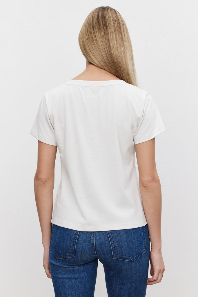 Say hello to your new favourite v neck tee! Crafted from Velvet by Graham & Spencer's signature super soft cotton and featuring a shortish length and a boxy fit this is perfect with your wide legged denim.