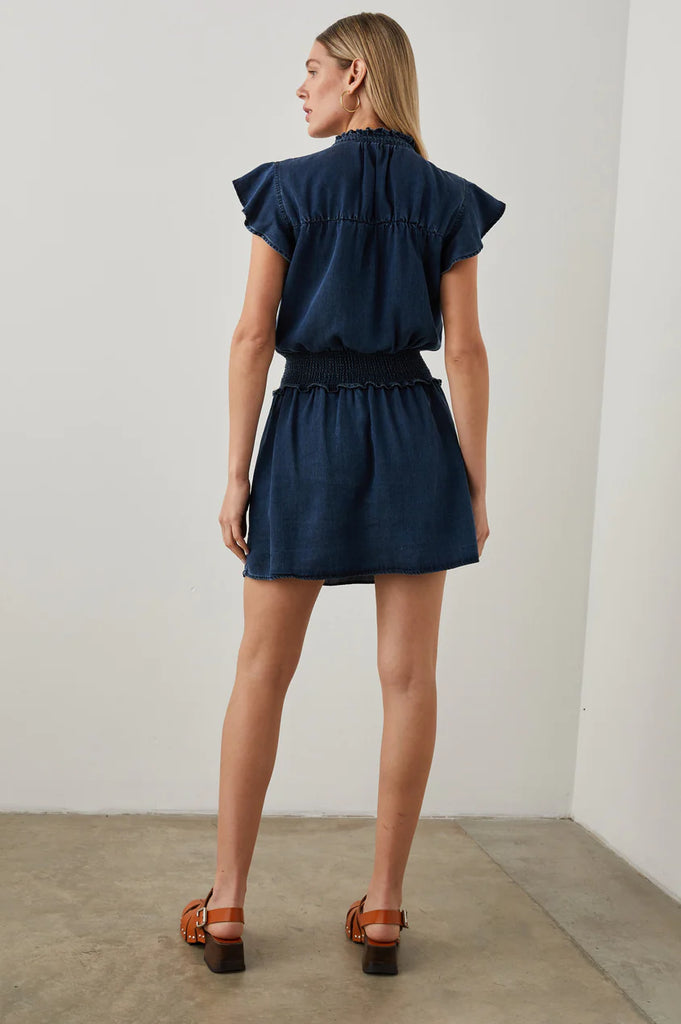 The Amina Dress from Rails is a summer wardrobe staple! Made from sustainable Tencel denim this dress is lightweight and comfortable. Featuring ruffle details, flouncy cap sleeves, a banded collar and a smocked waistband - this dress is easy-to-wear all day long.