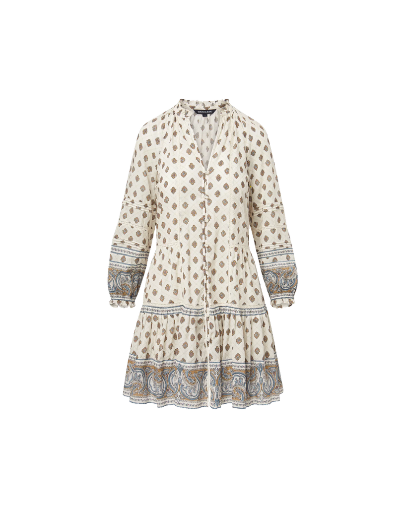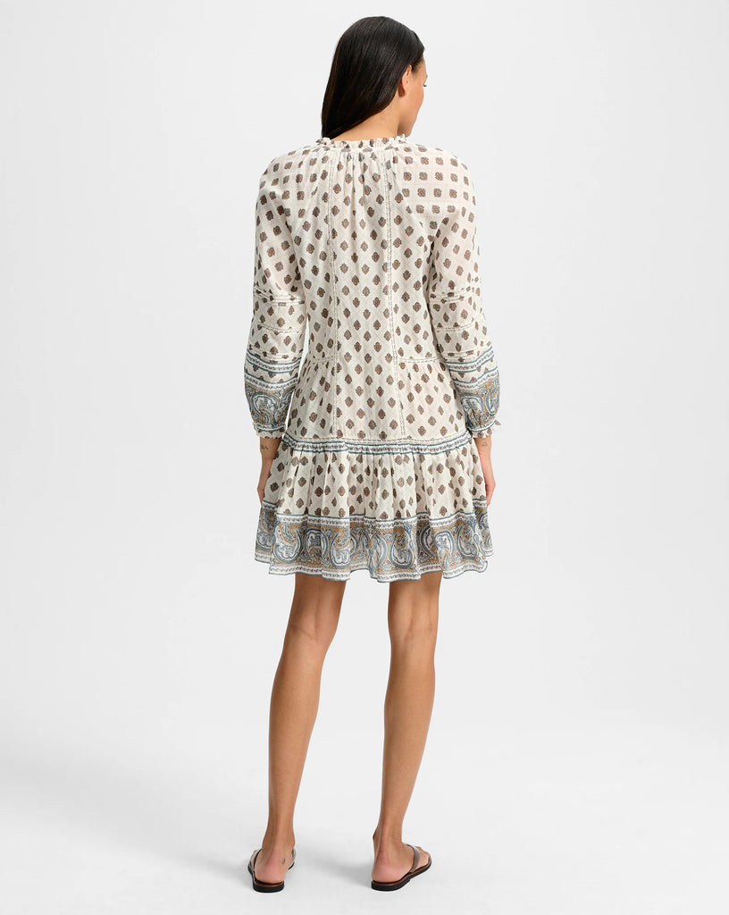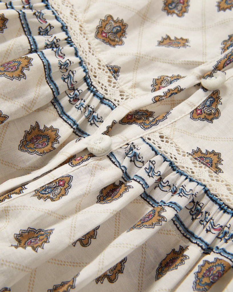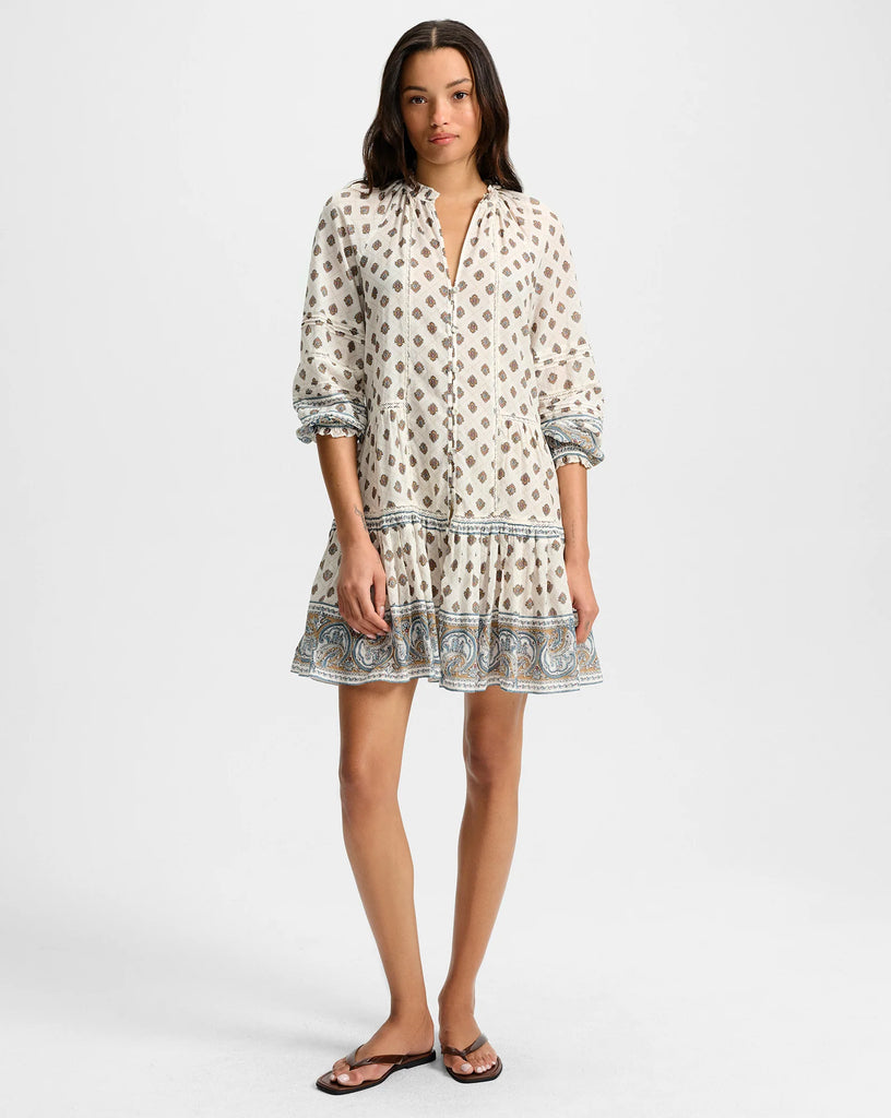 Boho chic at it's finest! Crafted from a super soft floaty cotton blend and with a relaxed breezy shape this is the perfect Summer dress. Featuring tight ruffles at the neckline and cuffs, a flattering v neck, blouson sleeves and a feminine flounce at the hem this is perfect for weekending and wanderlusting - put on some flat sandals and go!