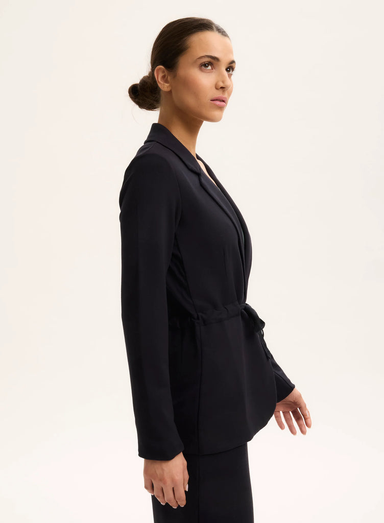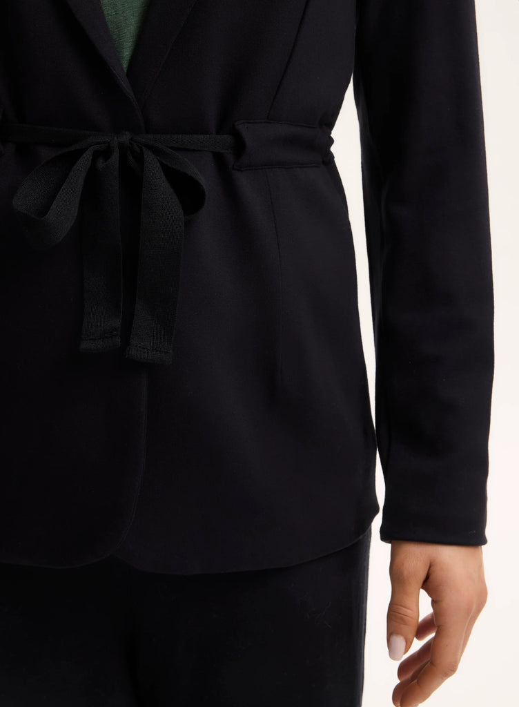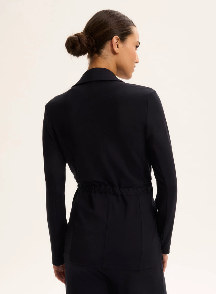 This slim-cut, tailored jacket from Majestic Filatures is crafted from 94% viscose and 6% elastane, giving an extremely soft feel with a touch of stretch. It features a v-neckline and a drawstring waist. It's perfect paired with the relaxed fit marine trousers.