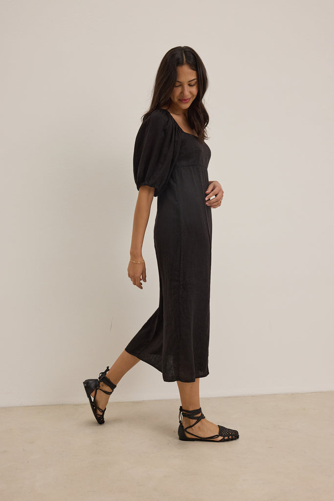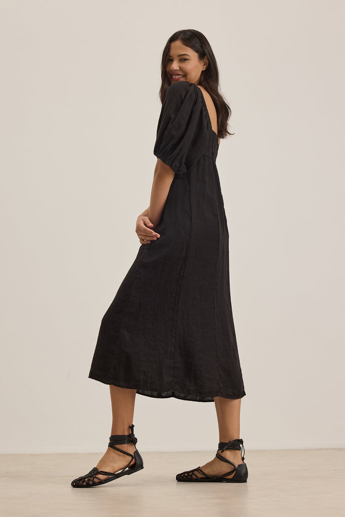 Ah we love a black dress in the summer and Brooke from Velvet by Graham and Spencer does not disappoint. Crafated from Velvet's super soft fabric and featuring a flattering empire waist style and puff ball sleeves this midi is great for dressing up or down. A great addition to your Summer dress collection!