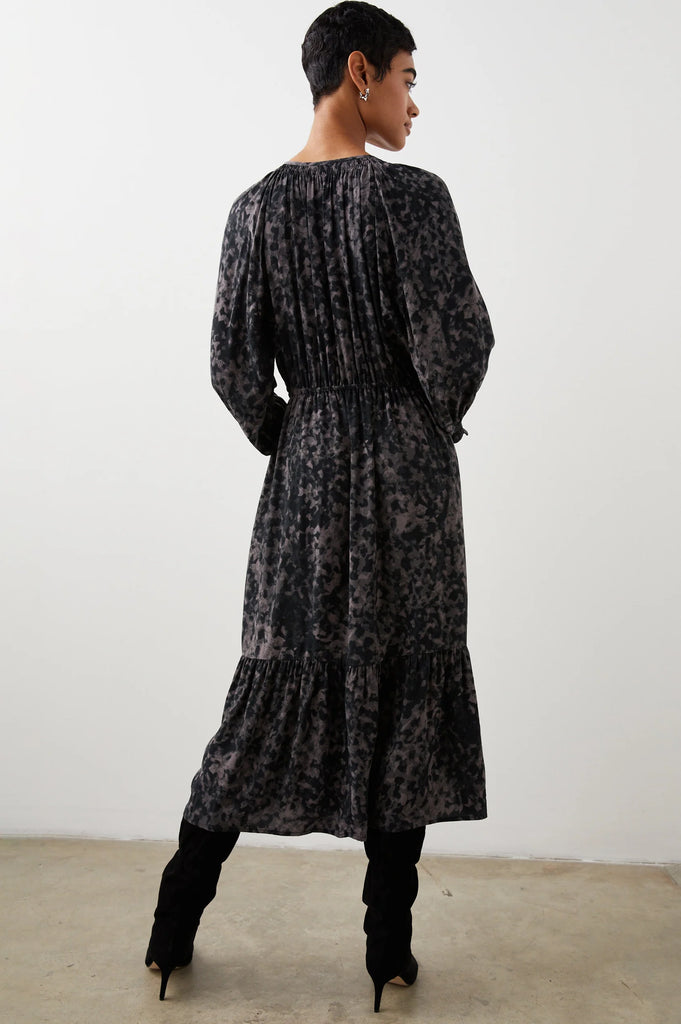 Cut from flowy rayon crepe, The Cece dress from Rails features billowy sleeves with elasticated cuffs, a v-neckline and a full button down front. With an elasticated adjustable waistband, this midi dress is not only super comfortable but flattering!