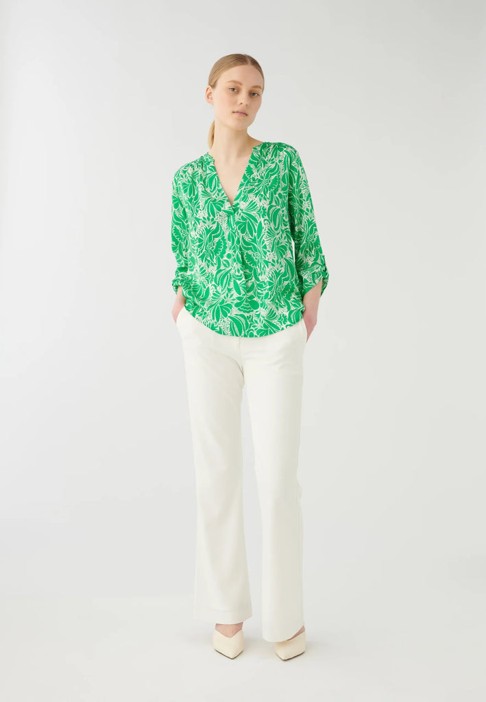 The Cille Blouse from Dea Kudibal is crafted from silk and features a v-neckline and roll up and fasten sleeves. In a fun green print, this blouse is easy to wear all year round! Style up with white jeans and sandals or dress down with trainers.