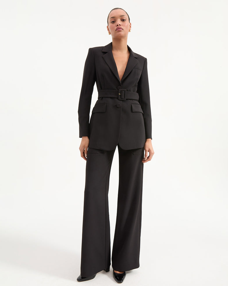 Say hello to Cole. Do you have black trousers? Of course you do but Cole definitely is worthy of a spot in your collection. These will quickly become your go to black trouser. Crafted from a premium stretch blend and featuring a relaxed fit, a wide waistband, roomy side pockets and a beautiful draped wide leg silhouette these look great with a neat knit on top.