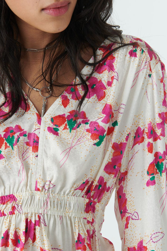 The Edon Top from Ba&sh is an elegant peplum blouse with an elasticated waist detail. Featuring a v-neckline and gathered cuffs that add volume to the mid length sleeves - this top enhances your shape beautifully and feels ultra feminine with the fun floral print.