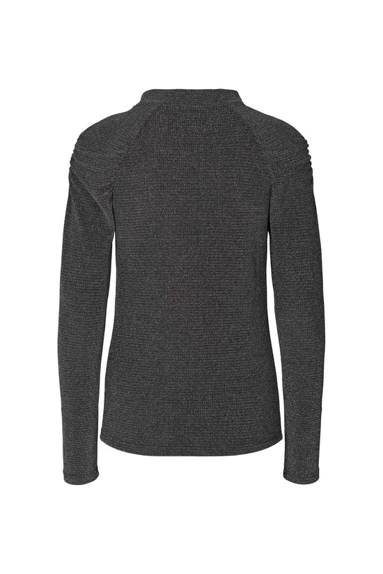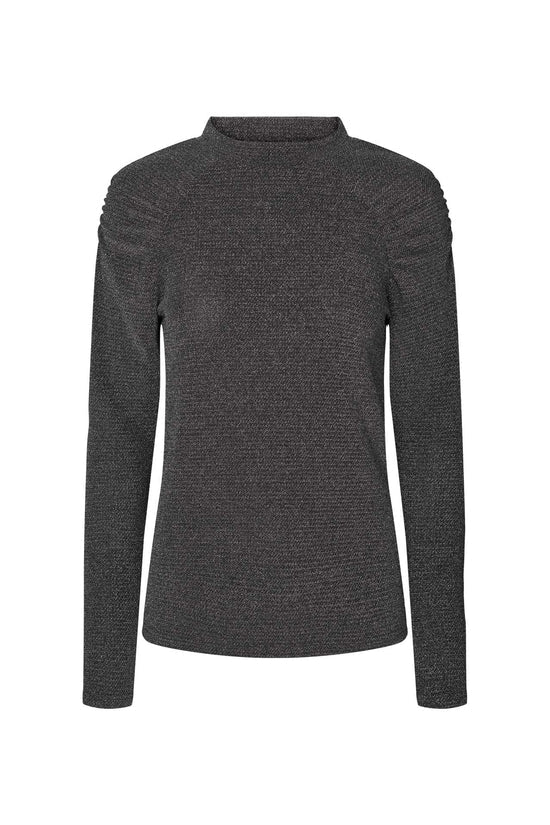 This cool fitted turtle neck blouse from Lollys Laundry is perfect to spice up any outfit. Featuring ruching on the shoulders, long sleeves and a touch of sparkle, pair with the matching Chile Silver Pants for the ultimate party look.