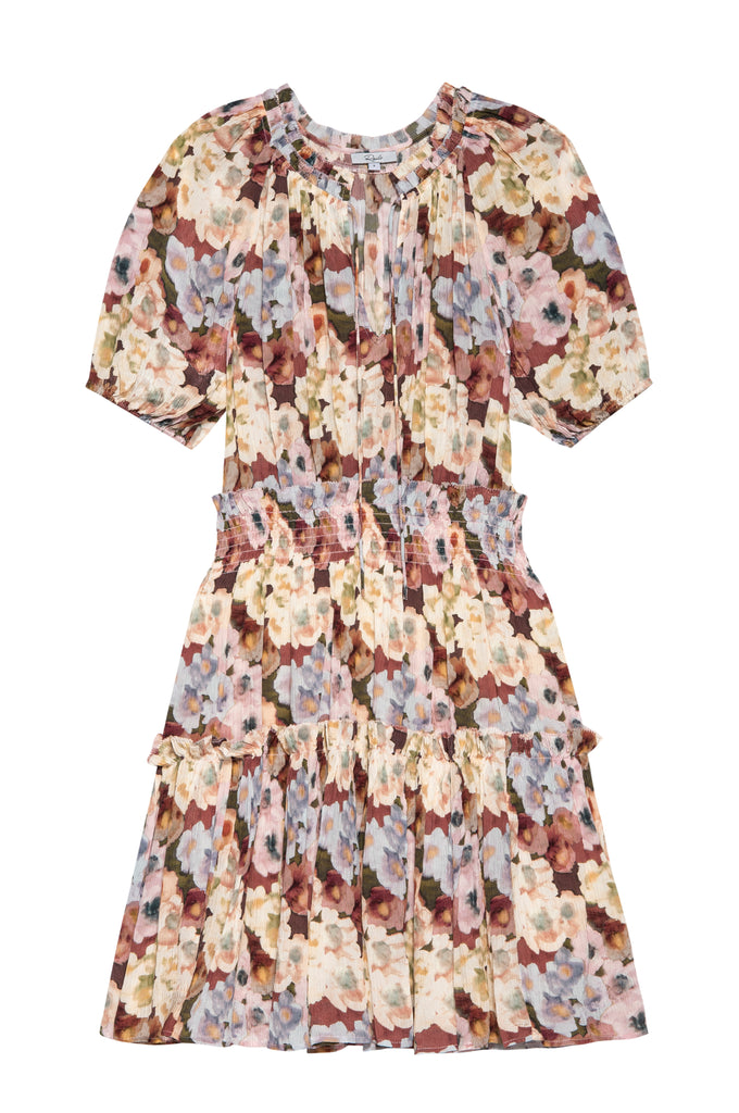 The Fiorella dress from Rails is crafted from their signature super soft fabric in a gorgeous floral print. This is an easy throw on and go dress and perfect for the change in seasons. Featuring a crew neckline with self ties, short sleeves, an elasticated waistline and a flowy feminine ruffled and tiered skirt. This looks great paired with trainers for a relaxed daytime look or pair with a heel for a more sophisticated evening vibe.