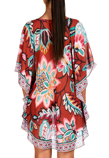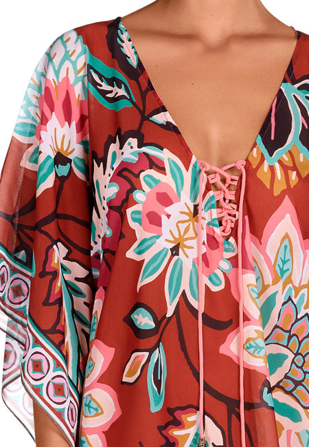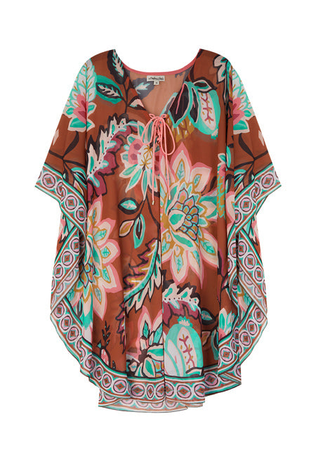 We are very excited to be stocking Spanish swimwear brand Dolores Cortes. The brand is a family business started over 60 years ago. It is known for its stylish design and amazing comfort. This beautifully patterned kaftan is a loose fit with a tie v-neck and 3/4 sleeves. Pair with the matching bikini to take you from the beach to the bar!