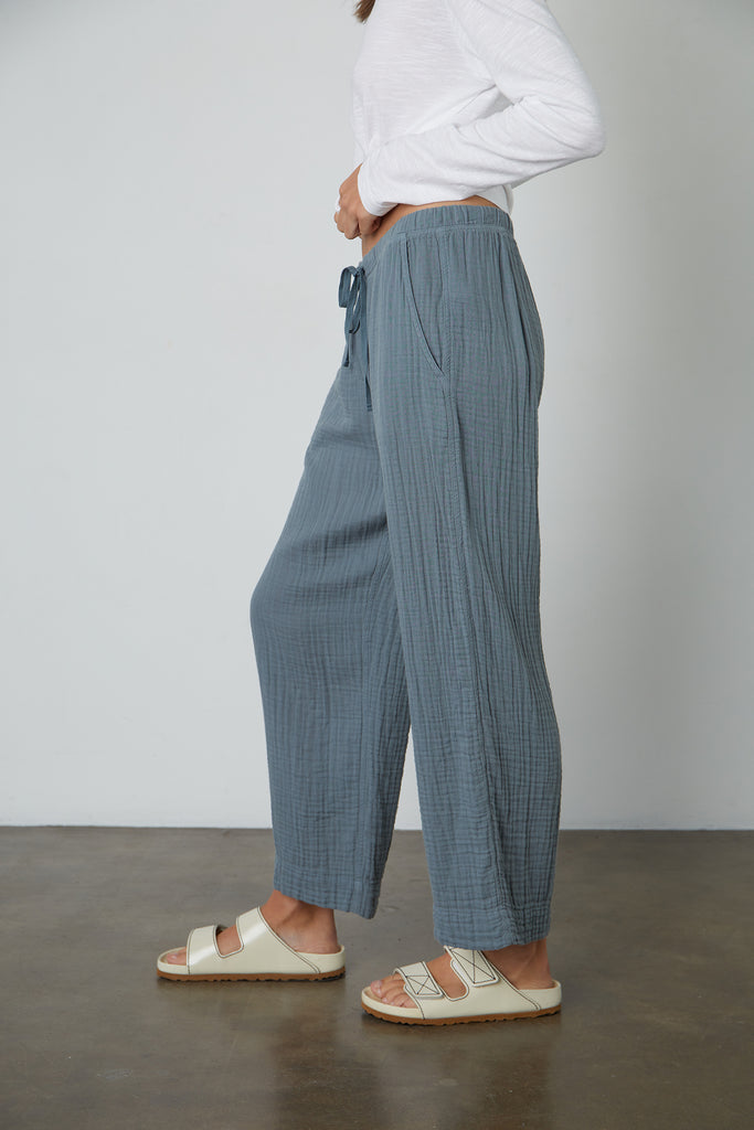 You are definitely going to want to make room in your wardrobe for this super comfy cotton gauze trousers from Velvet by Graham & Spencer. With the ease of a pull on trouser, a drawstring waist, a relaxed leg and the perfect pockets you'll reach for these again and again.