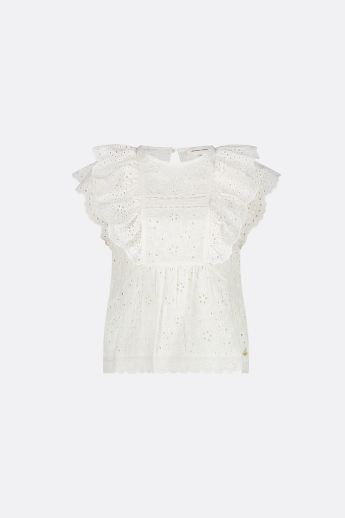This pretty crochet Gigi Top from Fabienne Chapot features ruffles down either side of the centre, frills at the sleeve and a slight boxy shape. Dress up or down with your favourite denim for that jeans and a nice top vibe.