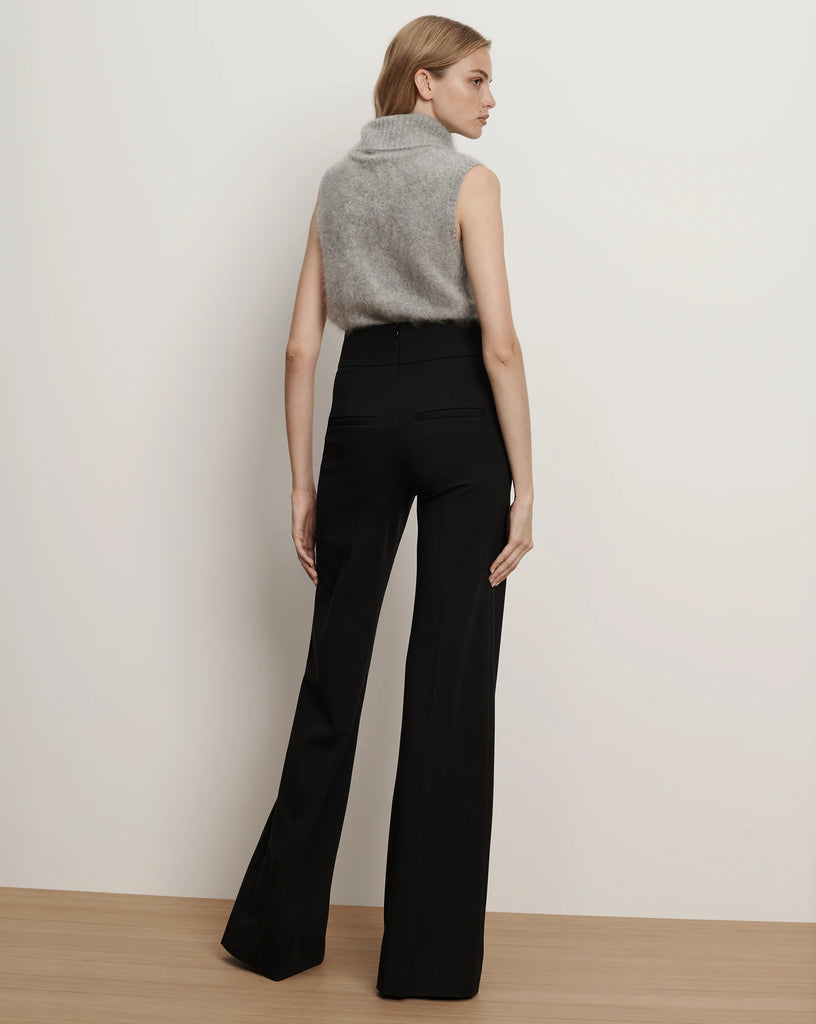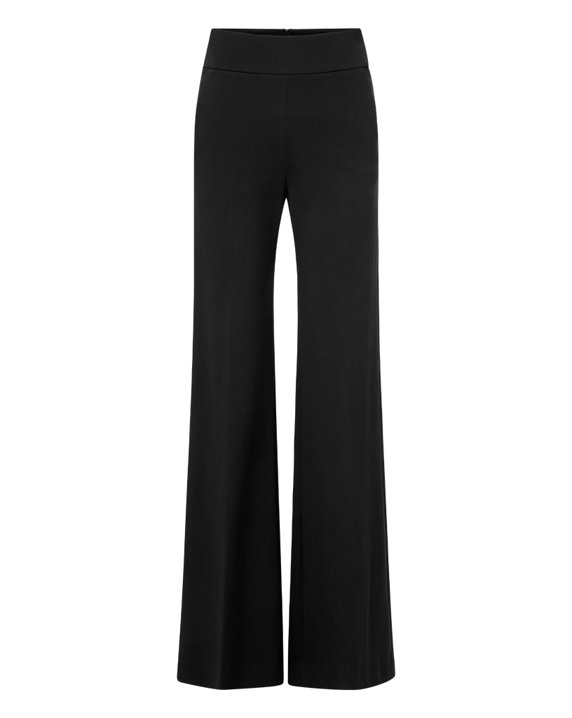 Say hello to Kalinda. Do you have black trousers? Of course you do but Kalinda definitely is worthy of a spot in your collection. These will quickly become your go to black trouser taking you from coffee to cocktails with style. Crafted from a smooth super stretchy (this trouser likes a curve) viscose knit Kalinda features a high rise flattering 3 inch waistband, a pressed front crease for polish and structure and an invisible back zipper closure for a clean finish. The ease of a pull on trouser with the refinement and tailoring we expect from Veronica Beard.