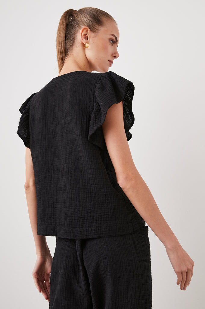 This lovely little top from Rails is crafted from easy breezy soft double gauze cotton in always wearable black and features a relaxed flattering fit. Pair with the matching Leighton Shorts for the cutest possible co-ord! Throw on some trainers and you're ready for a fun easy Summer day! We love it when our clothes are as relaxed as we are!