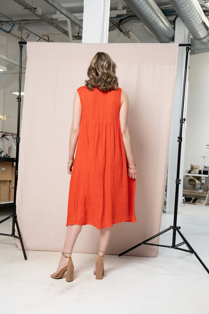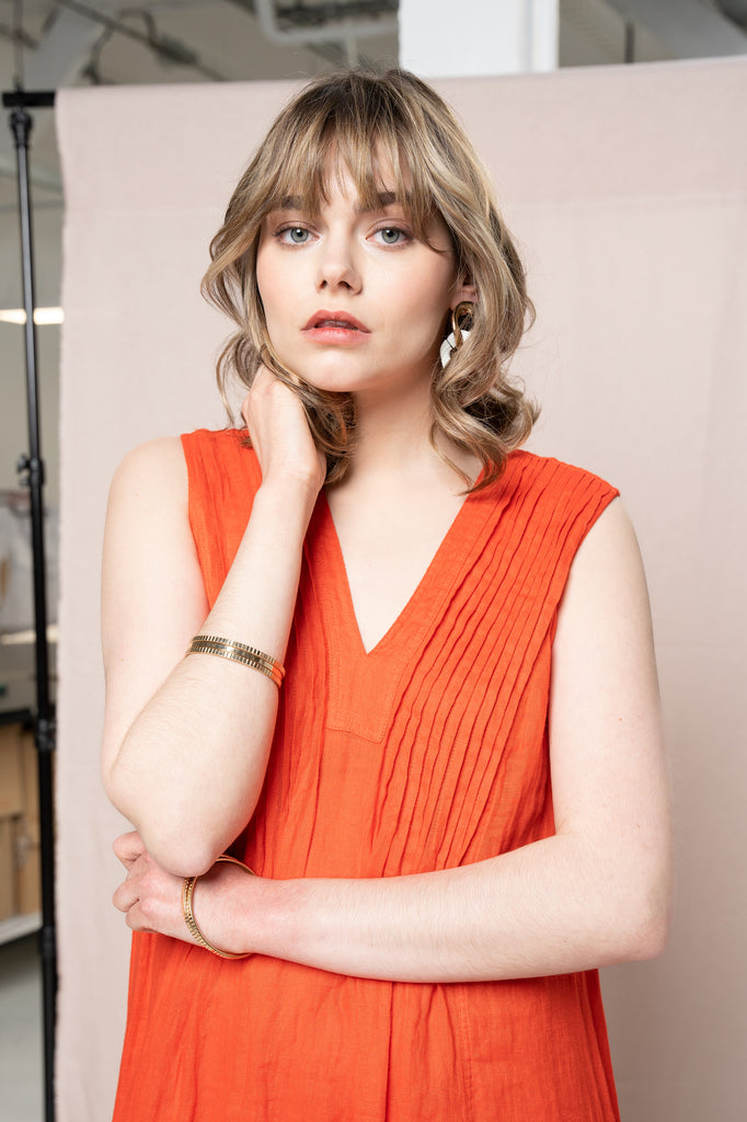 The Marie dress from Zyga is a wardrobe staple! In a bright orange this easy dress features a v-neckline and pleating at the bust - this dress is a go to piece for Summer. Also available in a Pink Floral and Khaki Floral in store!