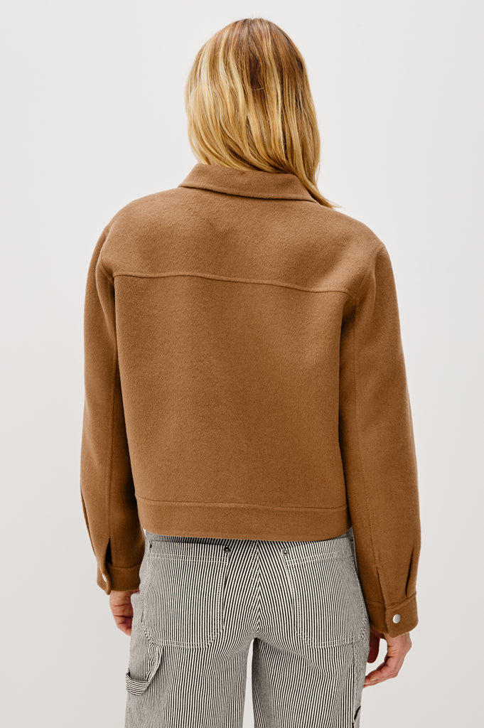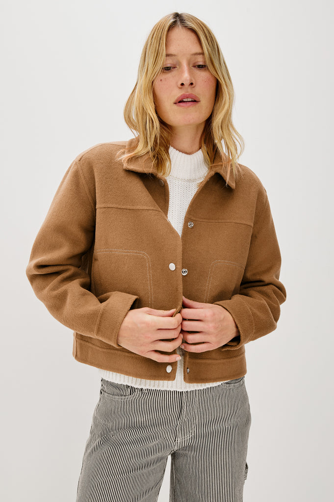This is a pretty jacket style from our favourite Californian lifestyle brand Rails. The Mountain Jacket in always wearable camel features a shirt type collar, central snap closure and 2 side pockets. With a neat short shape this is perfect paired with all your wide legged denim. A great extra layer as the temperatures get a bit chillier.