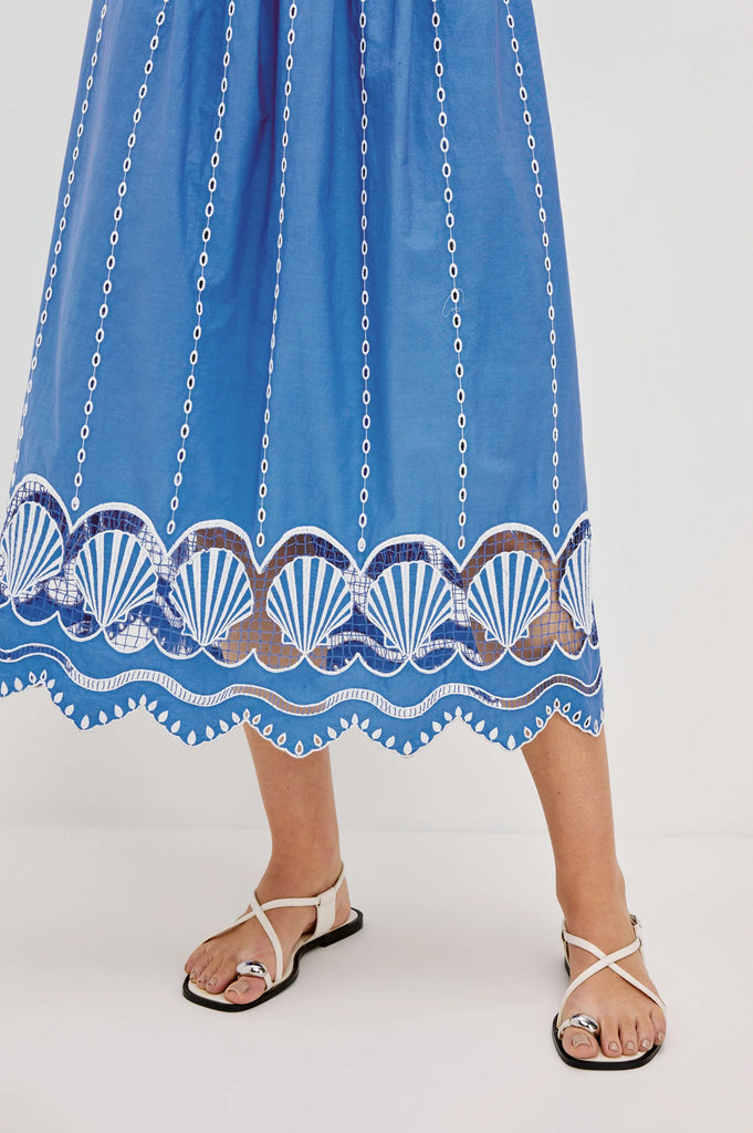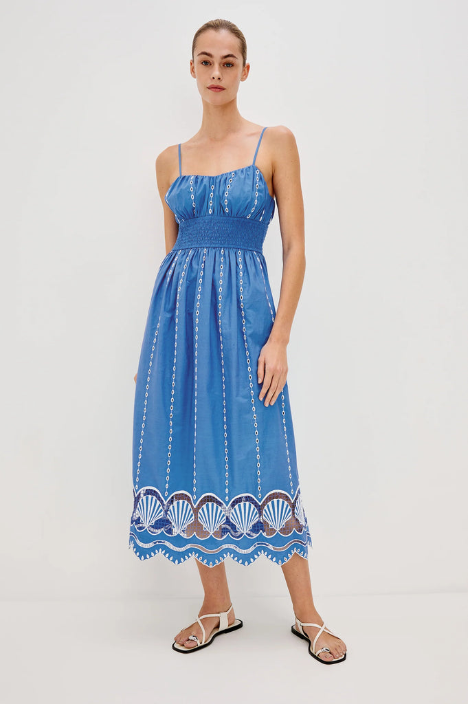 Say hello to Murano! This is a lovely new style from uber cool Californian brand Rails. In a pretty bright blue and crafted from a crisp cotton poplin blend this pretty midi ticks lots of our boxes. Featuring spaghetti straps, flattering smocking at the waist and laser cut details throughout this is one of those dresses that you will reach for again and again.