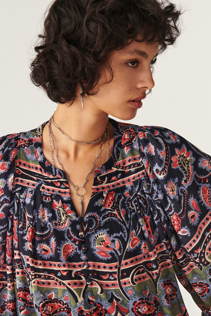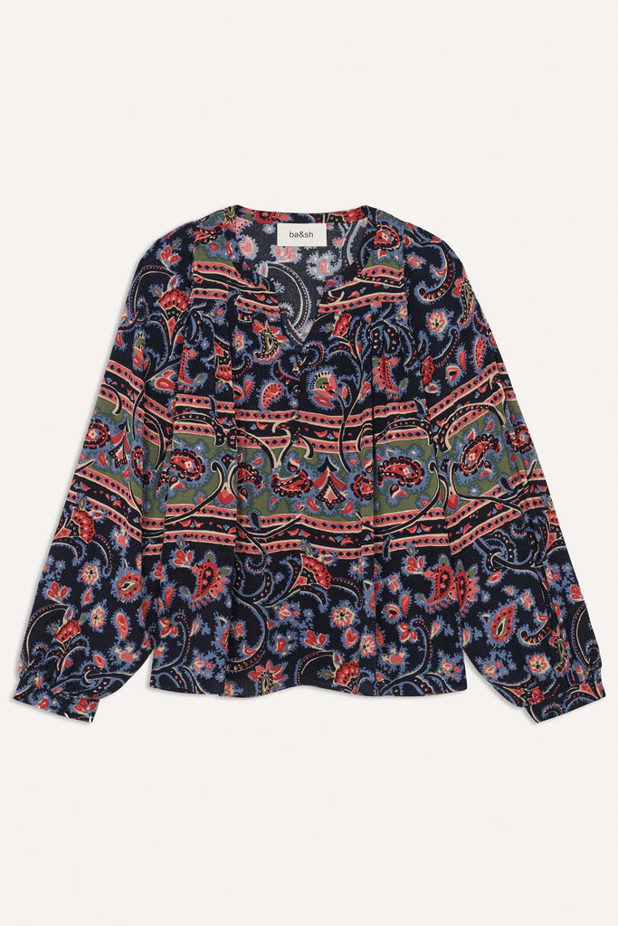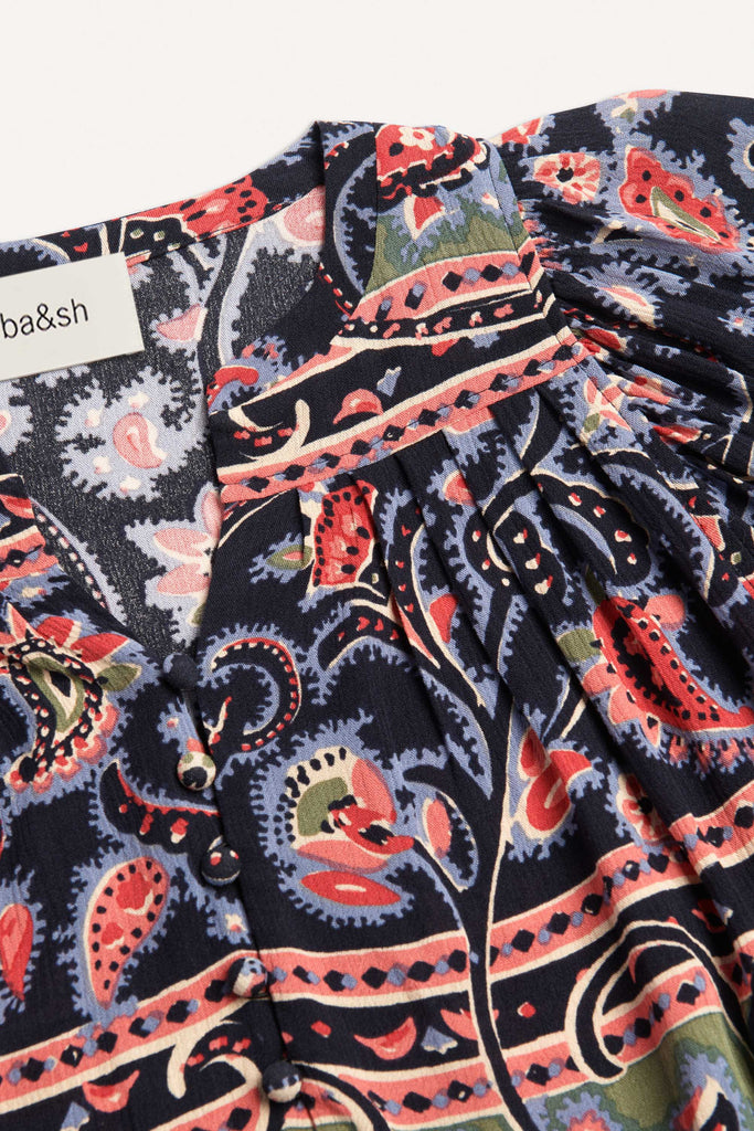 Channel your inner boho chick with the pretty Naoul Blouse by uber cool french brand ba&sh! Crafted from super soft flowing fabric in a bright print and featuring a round neck that dips into a short button placket and lovely loose puffy sleeves. Looks fab paired with your favourite denim or try with the matching skirt for a cute co-ord!
