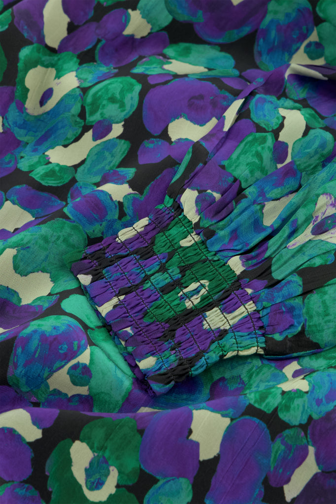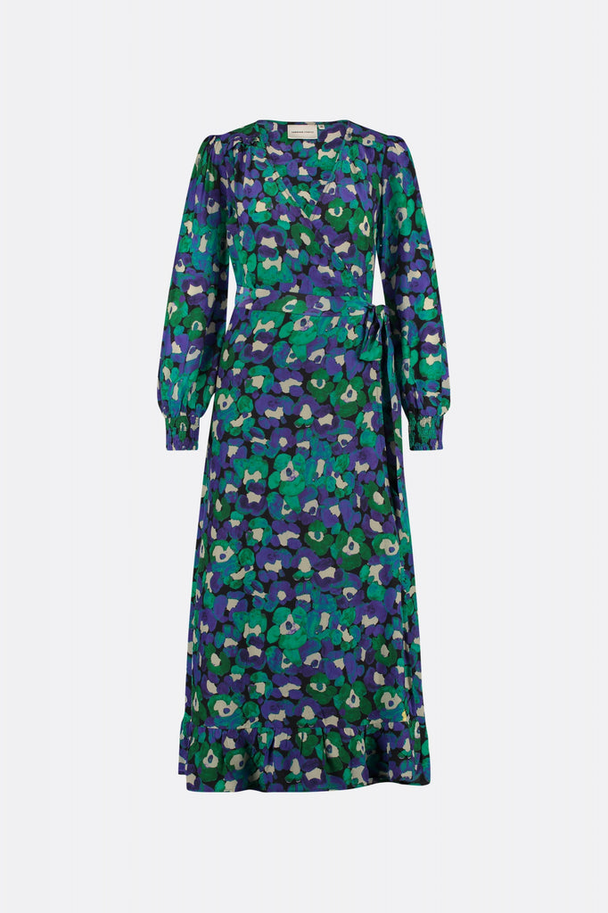 The Natalia Dress from Fabienne Chapot features a v-neckline, light balloon sleeves and smocked cuffs. This versatile wrap dress ties at the side and is in a fun green and purple floral print. Perfect with boots and/or sandals - this dress can easily be dressed up or down.