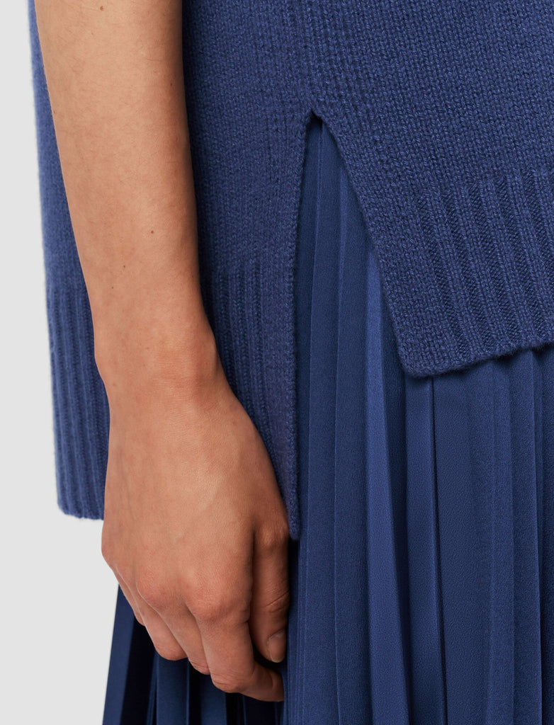 This pure cashmere vest is the epitome of understated luxury. Crafted from ultra fine Mongolian yarn cashmere this piece has the most luxurious feel. Finished with ribbing at the hemline and featuring a flattering v neck and knitted pintuck detail down the back this is great on it's own or over a crisp white shirt.