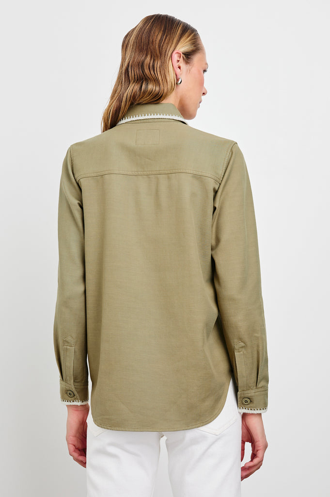 This super soft shirt or overshirt from Rails is a great transitional piece for Winter into Spring. In a pretty pale olive and featuring centre buttoning, 2 chest pockets and blanket stitch detailing this looks fab over a white tee with your white denim or can be worn on it's own.