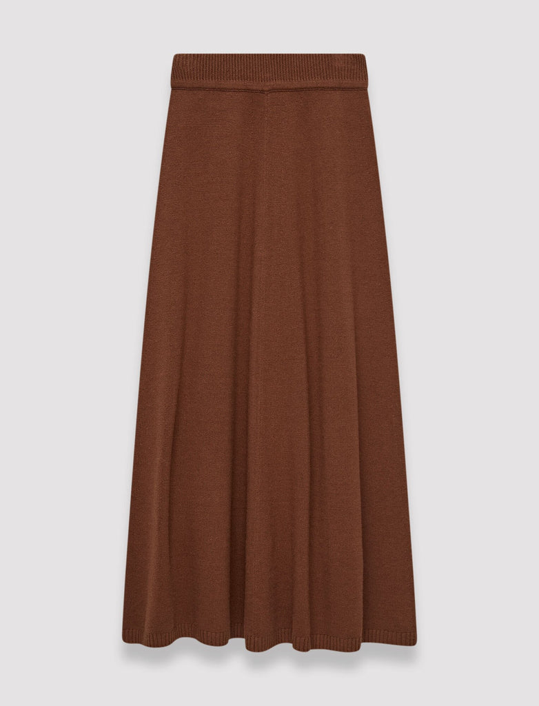 We are delighted to be stocking uber cool luxury British brand Joseph this season. This silk and cashmere blend skirt is a perfect example of what Joseph do so very well. Featuring an a-line shape this pull on skirt has needlework detailing down the centre and side and rib stitching at the waistband and hem and will look fabulous with a chunky knit.