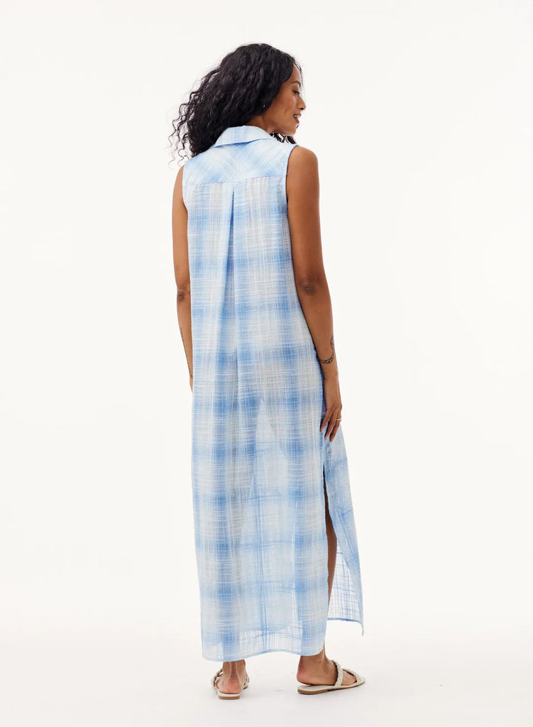 This Sleeveless Duster Dress from Bella Dahl is flowy and breathable, making it super easy to wear all summer long! In a subtle gingham, this dress features a button down front, side slits and a collar. Wear with white trainers whilst running errands or dress up for a garden party with sandals!
