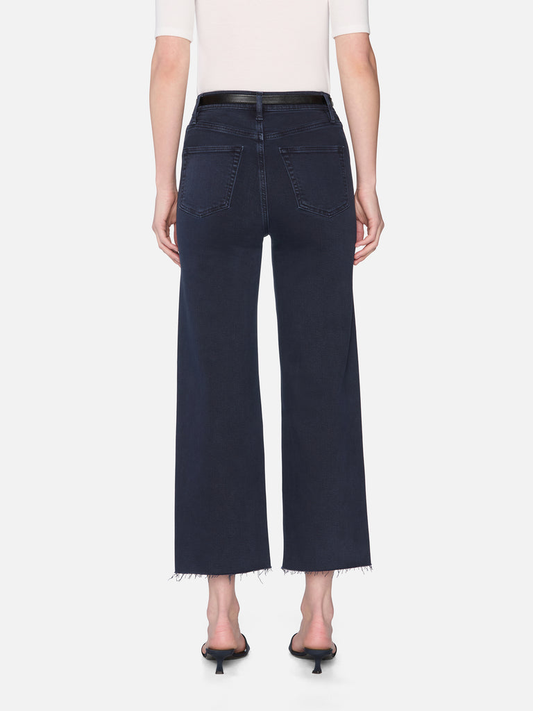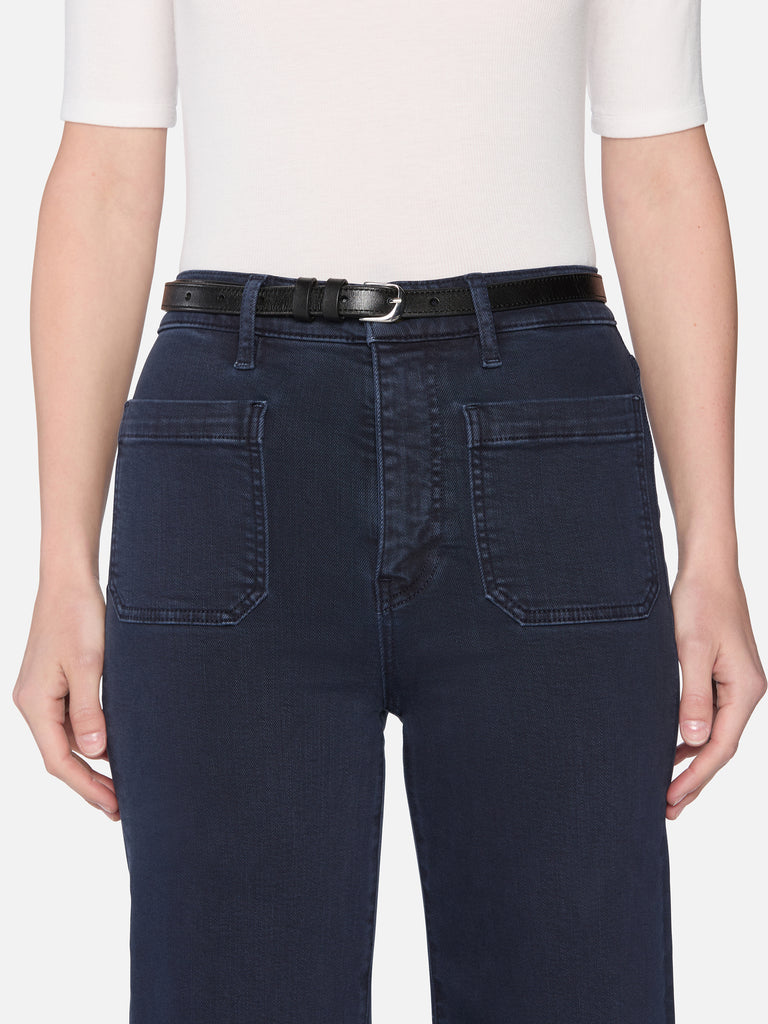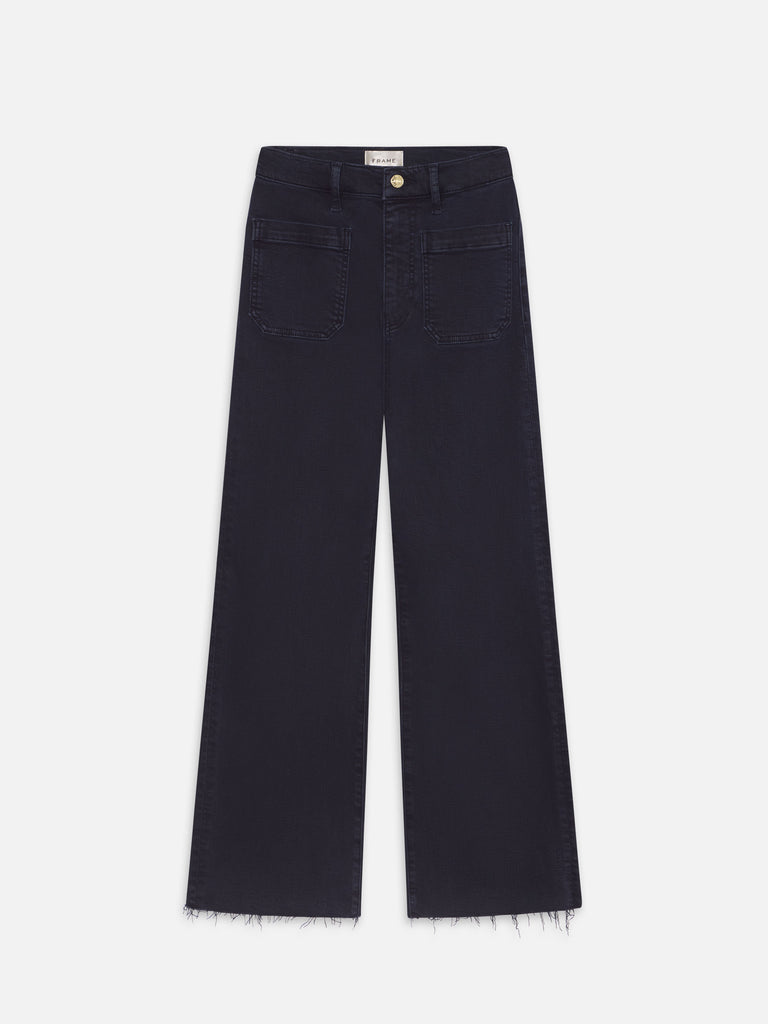 A step up from your usual denim these tailored jeans feature front patch pockets, a cropped inseam and a subtle wide leg. In always wearable navy these are practical and stylish! Pair with a neat cropped top and you've got a great weekend look.