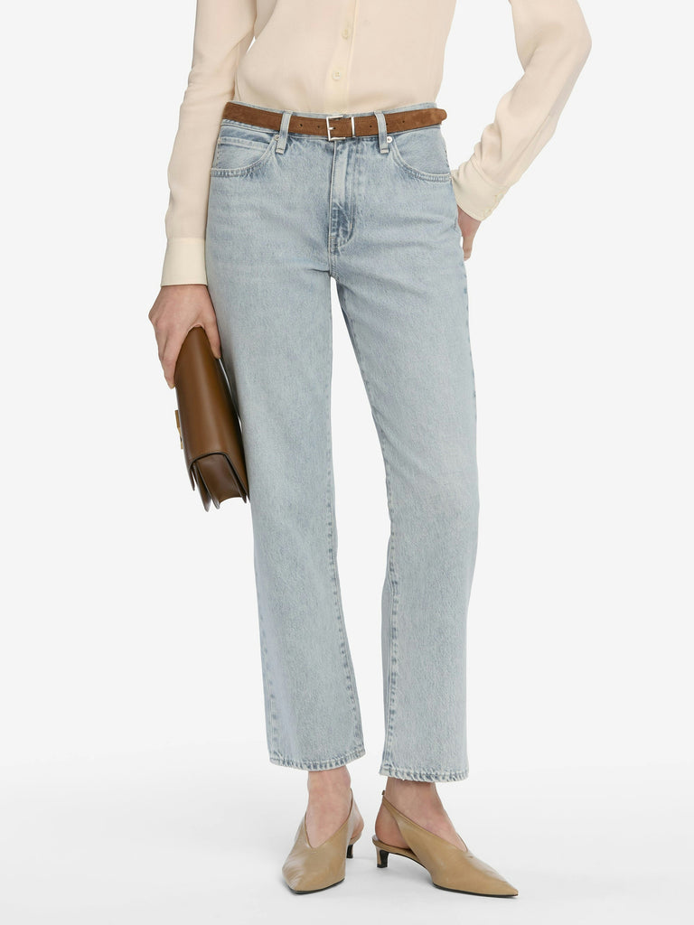 The Hang in an easy tailored denim from uber cool French brand Frame. They "hang" from a mid rise with nice room through the hip and thigh which gives an effortless modern silhouette. Not sloughy and always stylish - these will quickly become a go to.