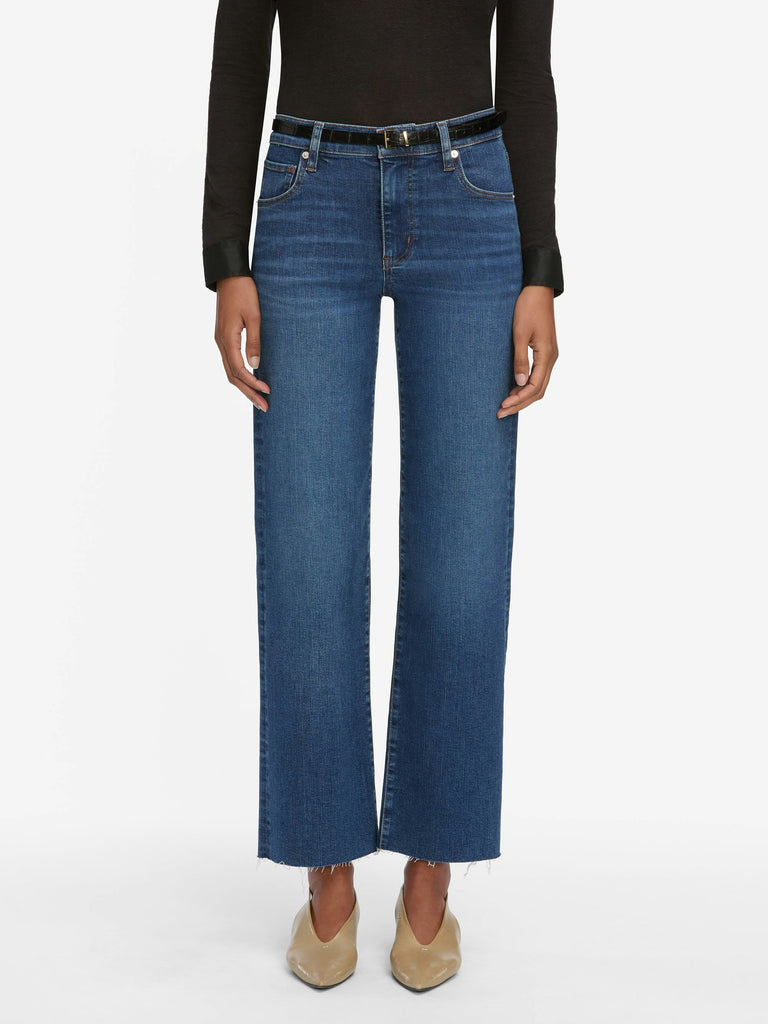 Finally a mid rise! The Mellow is a fab new shape from uber cool French denim brand Frame and features a true mid rise, ankle length inseam, a frayed raw hem and a slim wide leg. In a great mid wash these will quickly become your new go to. They also are super stretchy and have excellent recovery.
