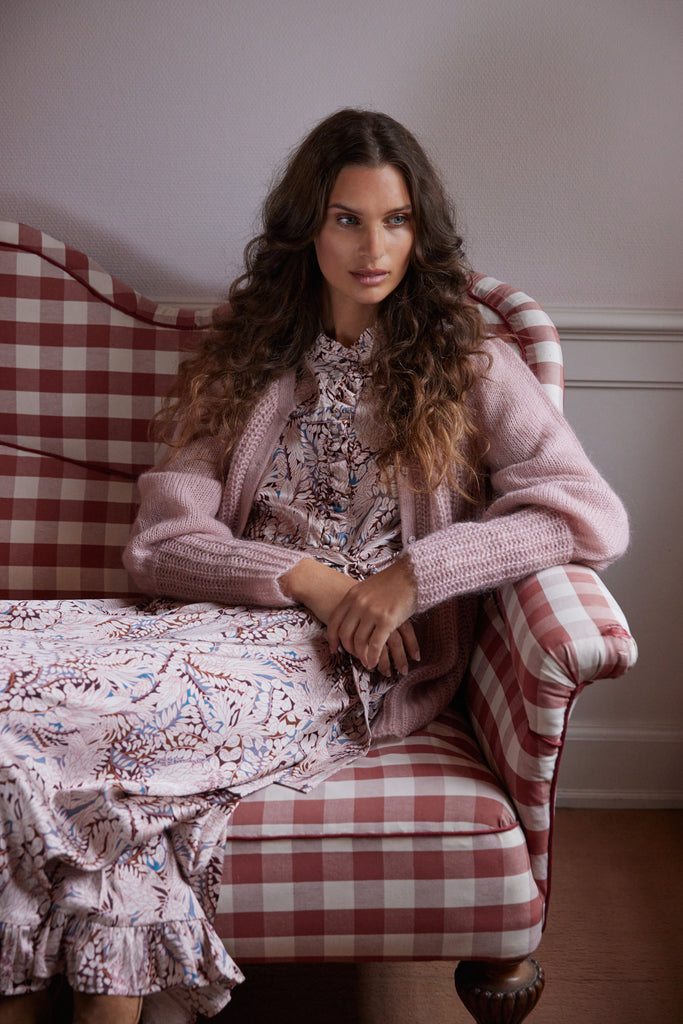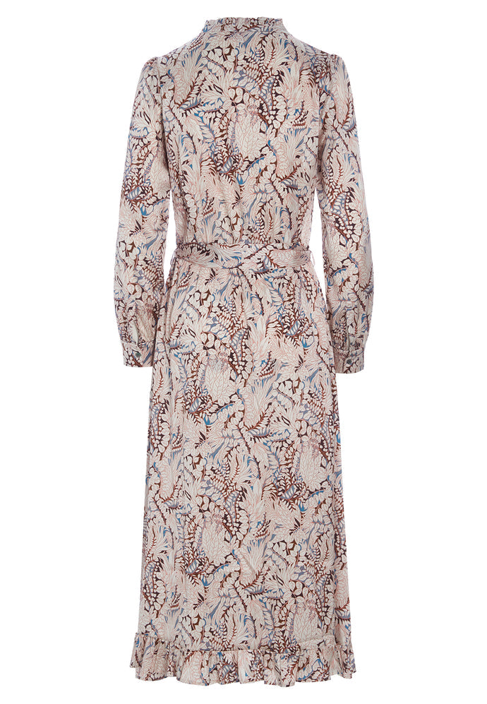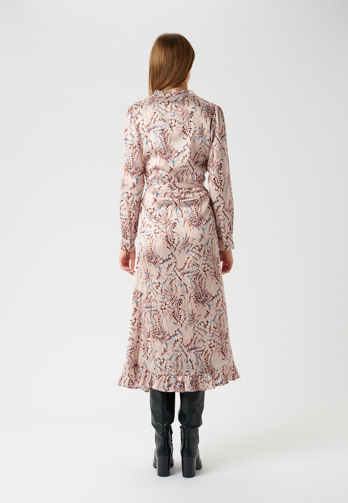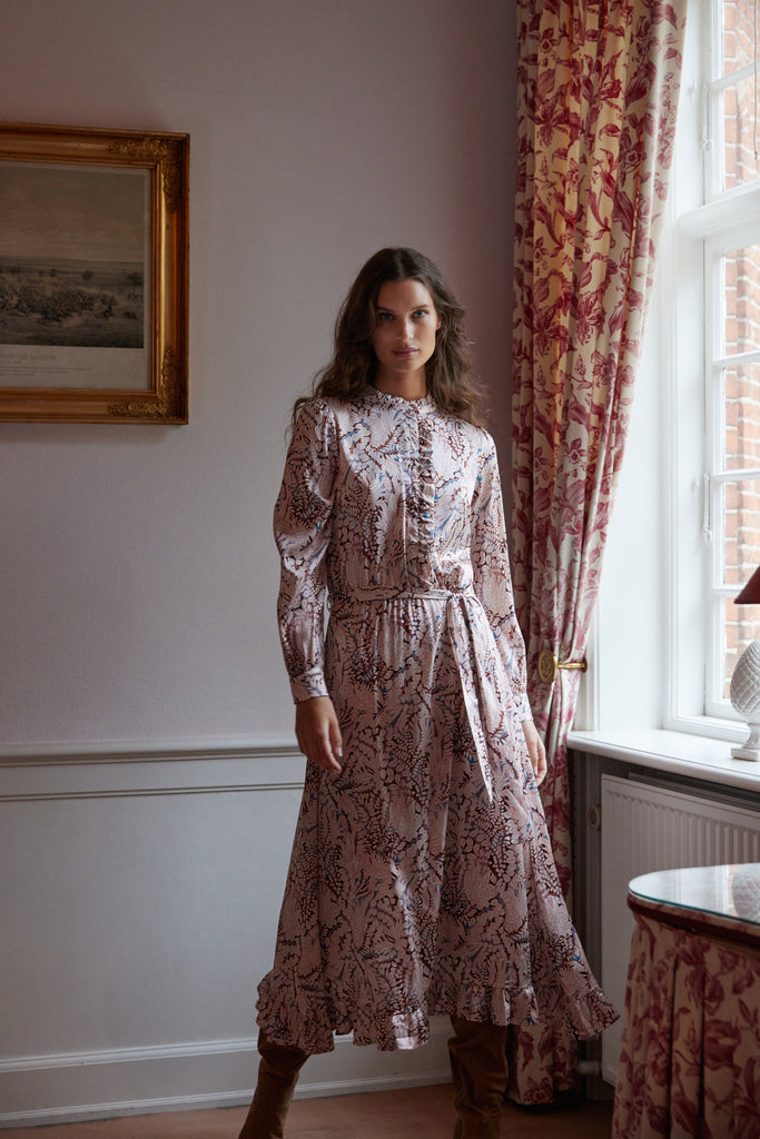 The Adina Midi Dress is an absolute stunner from dea kudibal! Crafted from super soft and comfortable stretch silk twill and in a gorgeous pinky leaf print this is a dress that has it all. Featuring long sleeves, feminine ruffle details at the neck and down the front centre buttoning and the hem as soon as you put this on you are going to love how it falls and flatters. Pair with your favourite boots and leather jacket for effortless dressing at it's best.