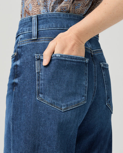 This modern high waisted wide leg jean from Paige has an easy relaxed fit and the elongated silhouette gives an effortlessly chic look. Crafted from Paige's signature vintage denim and featuring an extra long length and finished hem these will feel perfectly lived in from the first wear. Pair with a neat tee or knit on top for a classic daytime look.