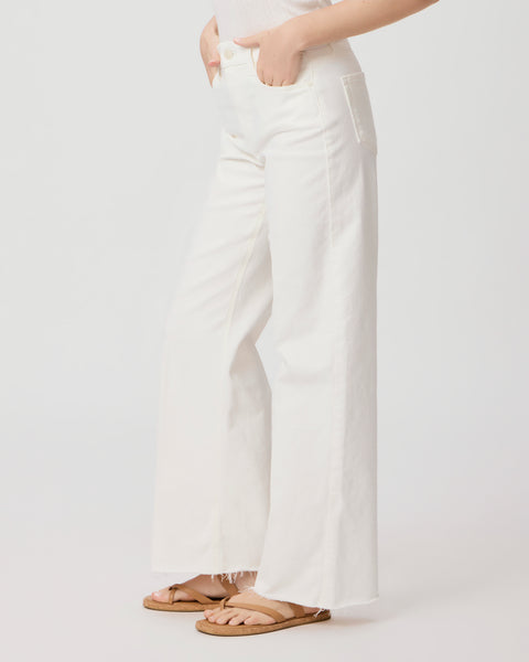 Anessa is back in a gorgeous ecru colour perfect for Spring/Summer! We actually like ecru in Winter too! This modern high waisted wide leg jean from Paige has an easy relaxed fit and the elongated silhouette gives an effortlessly chic look. Crafted from Paige's signature vintage denim and featuring an extra long length and raw hem these will feel perfectly lived in from the first wear. Pair with a neat tee or knit on top for a classic daytime look.
