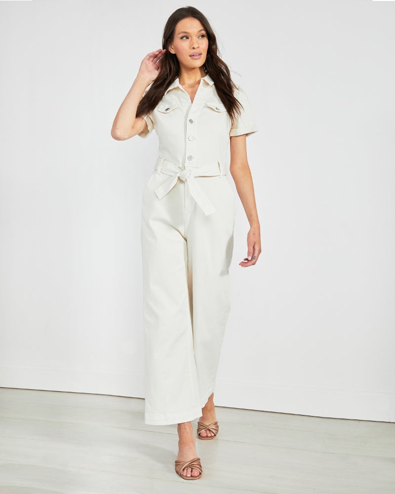 This stunning Anessa Jumpsuit is back in a flattering neutral for Spring/Summer. Featuring a cropped wide leg, a button front v-neckline and a quilted tie-up waist detail, this jumpsuit creates a flattering silhouette and a super long leg look and is one you'll reach for again and again.