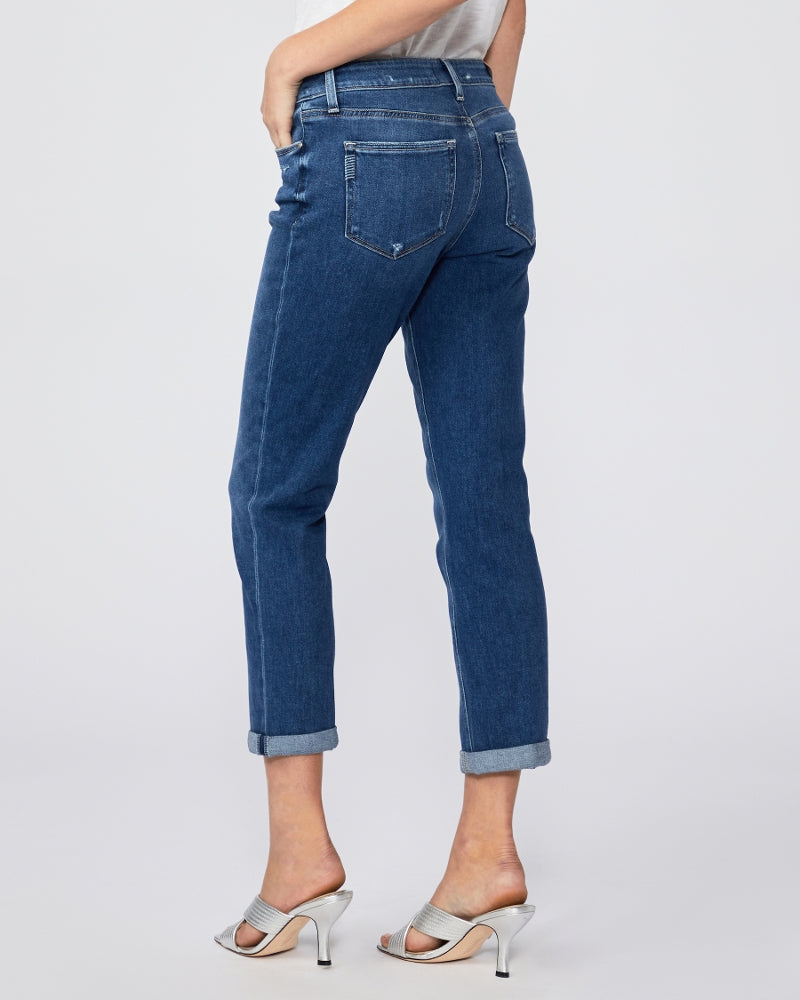 This mid-rise tailored boyfriend jean from Paige is back in a medium vintage-inspired wash. Featuring distressed detailing and a rolled hem, these jeans are cut from Paige's TRANSCEND VINTAGE denim. Pair with trainers for that everyday relaxed look or dress up with a pair of heels for the evening.