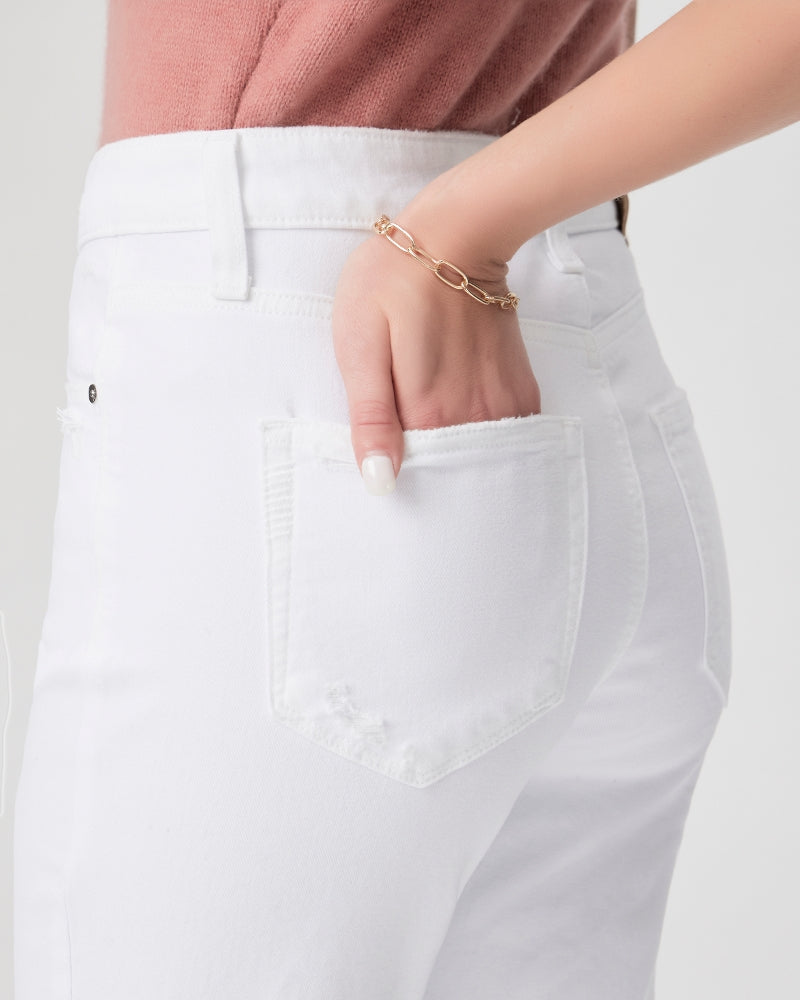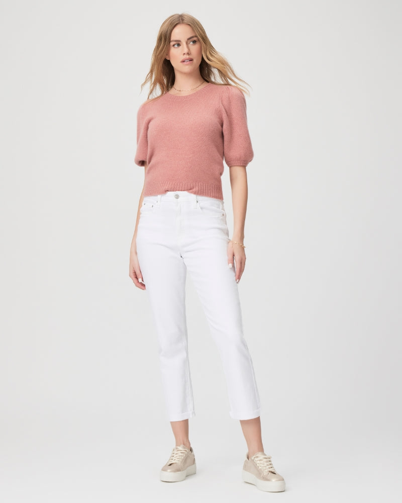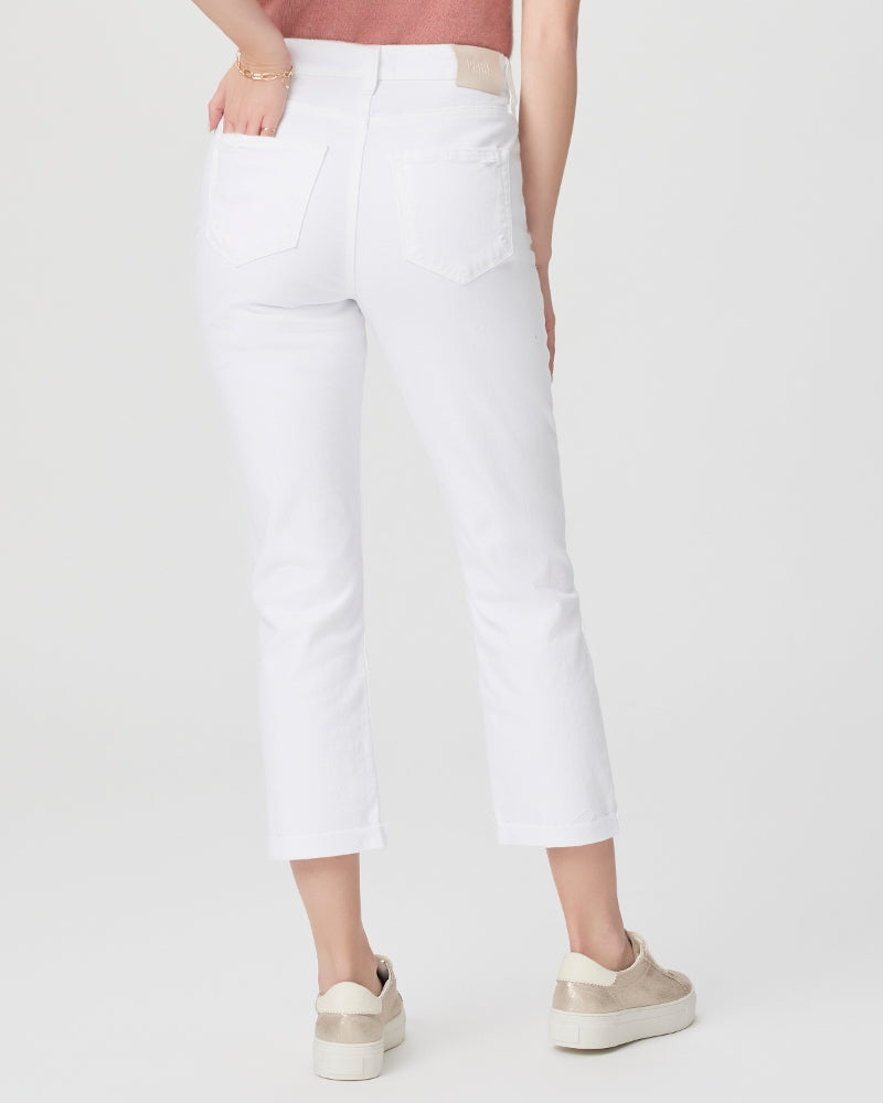 Our favourite relaxed boyfriend jean from Paige is back and this time she is in a crisp white and also has a slightly higher rise. With a little bit of distressing, a cuffed hem and a slim cut jean has the look of authentic denim with the bonus of having an incredibly comfortable stretchy fit.