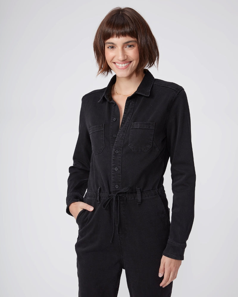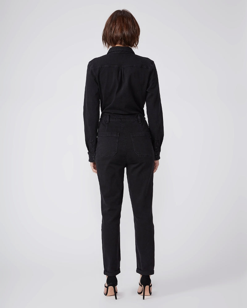 After the success of the Christy Pant Paige have created the Christy Jumpsuit. Featuring long sleeves, a drawstring wait, a box pleat in the back and a slightly relaxed tapered leg and crafted from stretch denim in vintage black this jumpsuit is one you'll reach for again and again. Looks just as good dressed down with trainers as it does dressed up with a heel.
