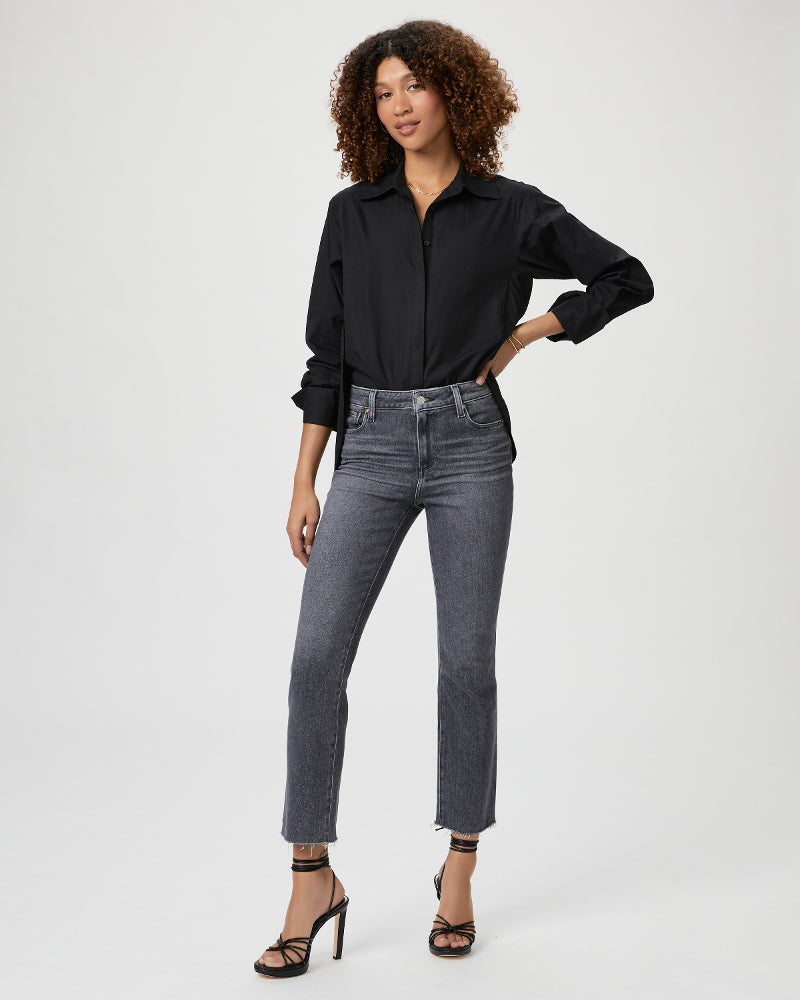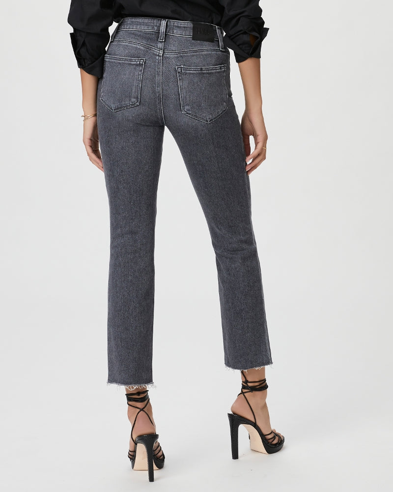These high-rise straight jeans from Paige finish at the ankle with a raw hem. Cut from PAIGE's Vintage denim in a grey wash, these jeans feature whiskering and a slight marbled texture. The combination of comfort and stretch provides everything you love about authentic vintage denim. These super soft jeans feel perfectly lived-in from your very first wear.