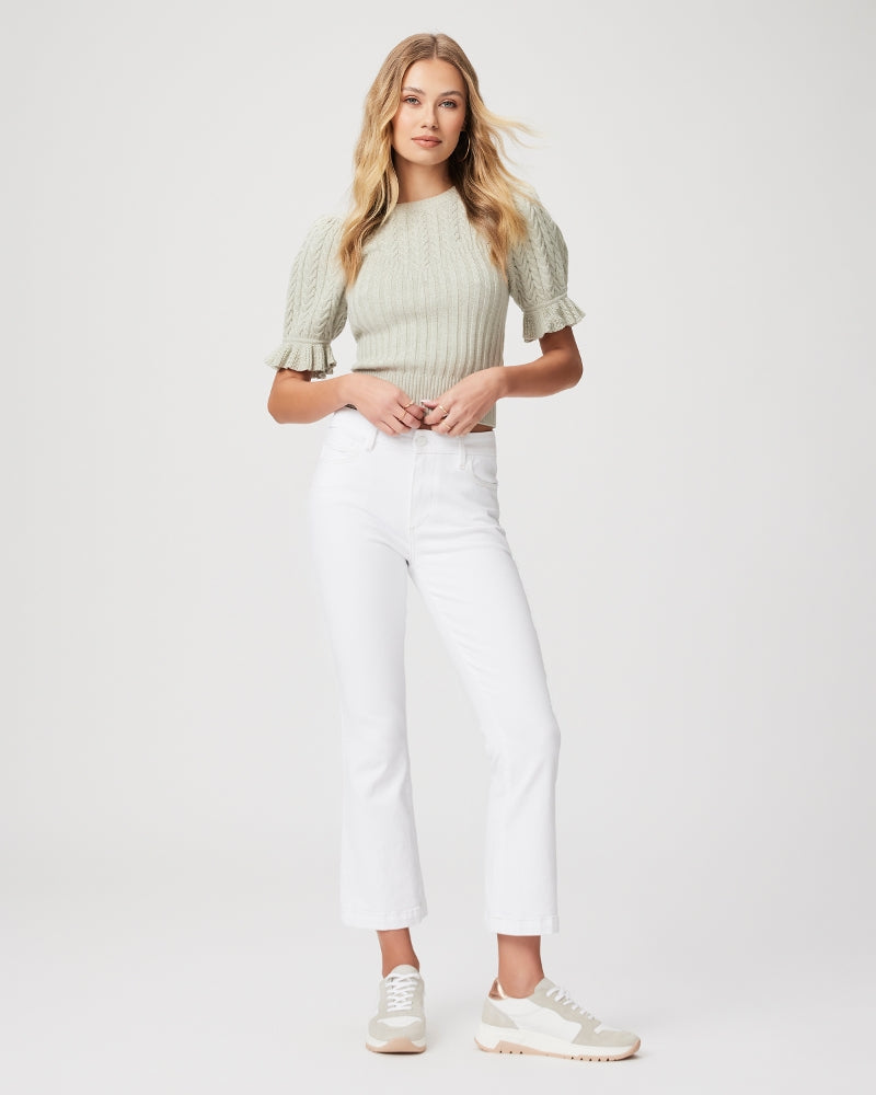 The Colette Crop in Crisp White is a high rise cropped flare which is slim through the thigh with a sexy little kick flare at the ankle. Crafted from Paige's incredibly comfy Transcend Vintage Denim, they have plenty recovery and stretch. Pair with a pretty blouse for an easy Spring look.