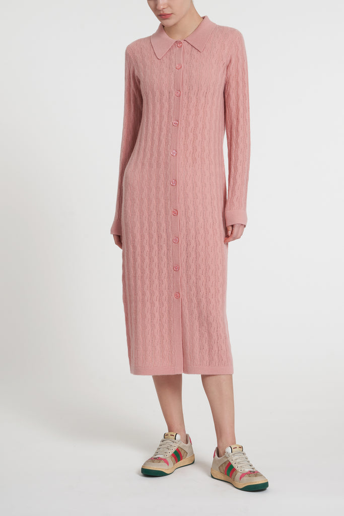 Is it a cardigan or is it a dress! Ultra luxe cashmere brand Madeleine Thompson have called it a cardigan but we've tried it on and Dahlia makes a very pretty knit "shirt" dress. Crafted from a super soft cashmere and wool blend and in the prettiest dusty pink this looks great over your favourite denim but equally fab paired with your favourite trainers for a relaxed yet elegant day look.