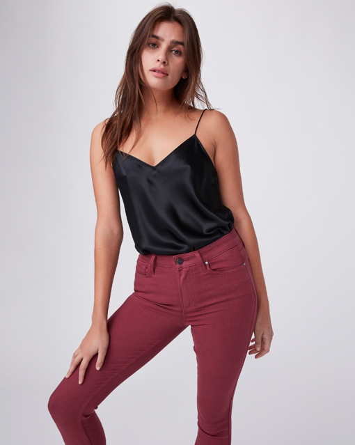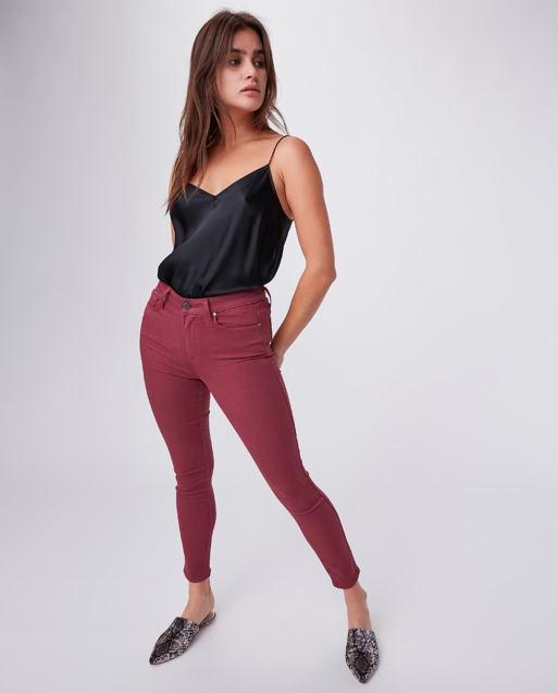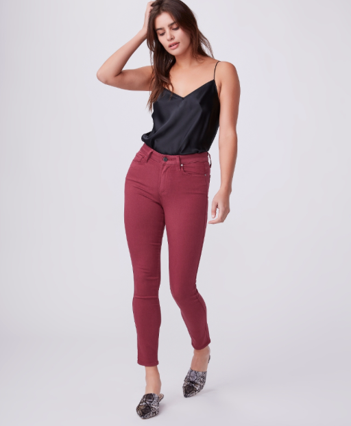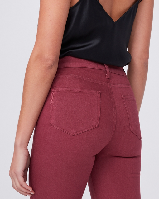 Liven up your denim collection with this fab muted raspberry pair with sleek pewter hardware which is perfect for any season. Featuring Paige's signature Transcend fabric and fitted from the hip through the leg opening this pairs perfectly well with a chunky knit or a tee.