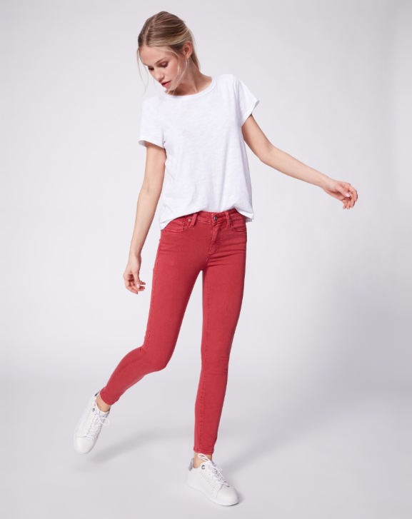 Step into Spring with Paige's skinny jeans in a bright red/pink colour. Crafted from their super soft transcend fabric these move with you and have the feel of a legging with the structure of a jean. Paired with a white tee and trainers and you're ready to face the weekend with style.
