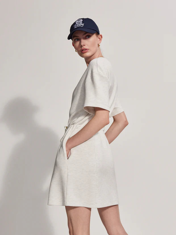 The easiest of dresses to take you from school run to travelling, the Maple is a crew neck t-shirt style dress made in Varley's amazing DoubleSoft® material. Sitting just above-the-knee, toggles cinch in the waist, there are side pockets, and an off duty seam detail complete this versatile dress.