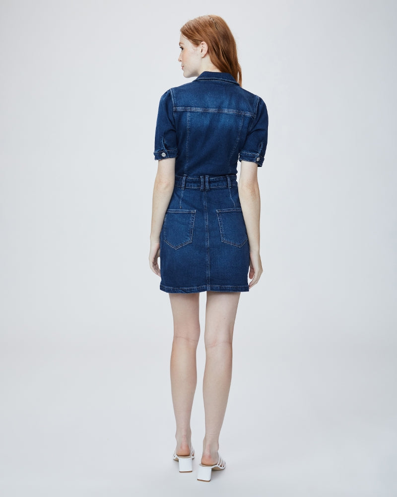 Paige have gone and created the most perfect wearable denim dress. Crafted from super soft denim in a medium wash this is one you'll put on and forget about. With a flattering fitted shape, short sleeves and a double belt loop detail this is flirty and fun. Pair with either our D.A.T.E. trainers for day or a pretty Castaner espadrille for evening.