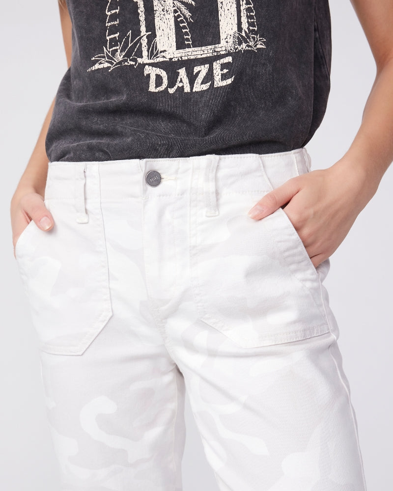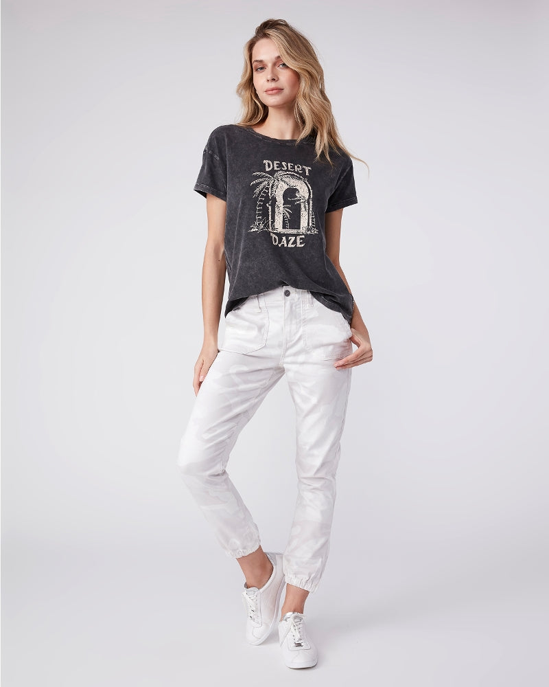 Our favourite Mayslie Jogger from Paige is back in a great neutral faded beige camo print. When you've had enough of your denim and fancy something different these are perfect. Super comfy yet stylish with a streamlined silhouette and zipper detail at the cuffs.