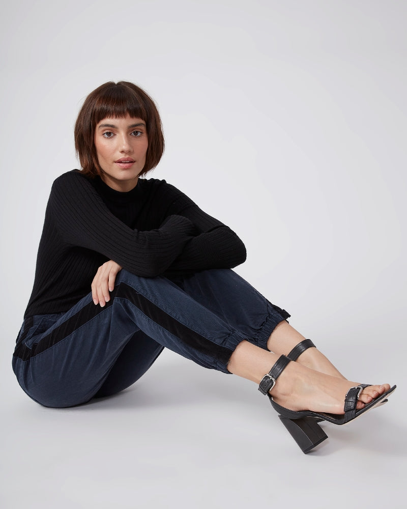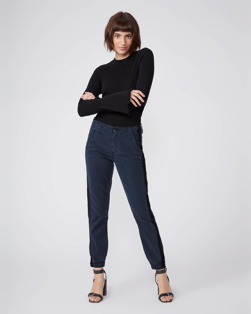 Mayslie is back with a difference! Our new favourite weekend essential from Paige has been re-worked. Still crafted from their super soft denim and featuring ankle zippers and pockets front and back Paige have added a black velvet tuxedo stripe down the side. These are going to become a big part of your weekend wardrobe. Easily dressed up with a heel and a silky cami or dress down with a biker boot or trainer and a cashmere jumper or tee.