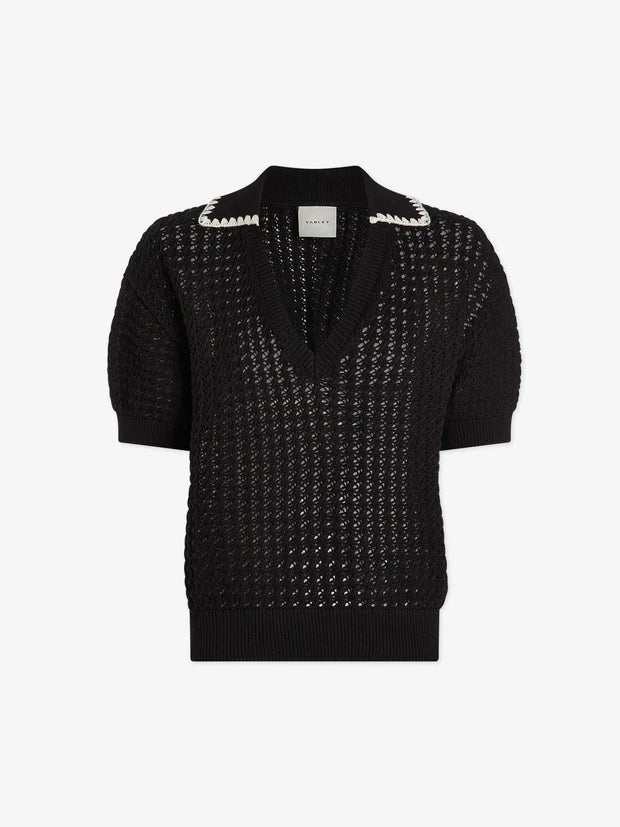 Monte V Neck Knit Polo Black
