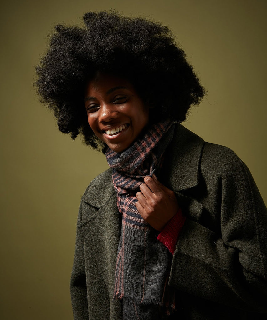 Lovely grey and pink tartan wool scarf from always popular French brand Hartford. Perfect for when the weather cools down and you want a bit of warmth around your neck - in a very stylish fashion!