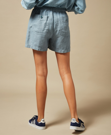Super comfy and flattering linen shorts from Hartford. Featuring an elasticated waistband and drawstring, side pockets and 2 piped buttoned back pockets these are an easy choice for a warm summer day. Pair with your favourite tee and you're good to go.